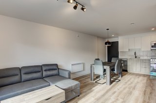 Beautiful 3 ½ in a brand-new 2024 construction in Ville-Marie (Ste-Marie sector). Fully furnished and all-inclusive, this unit features a modern urban design crafted to maximize comfort and tranquility. Built with top-quality materials, it includes quartz countertops and sleek, contemporary finishes. Enjoy superior soundproofing, a private terrace, and a secure building with an on-site concierge. Just a two-minute walk from Frontenac metro station and local shops.